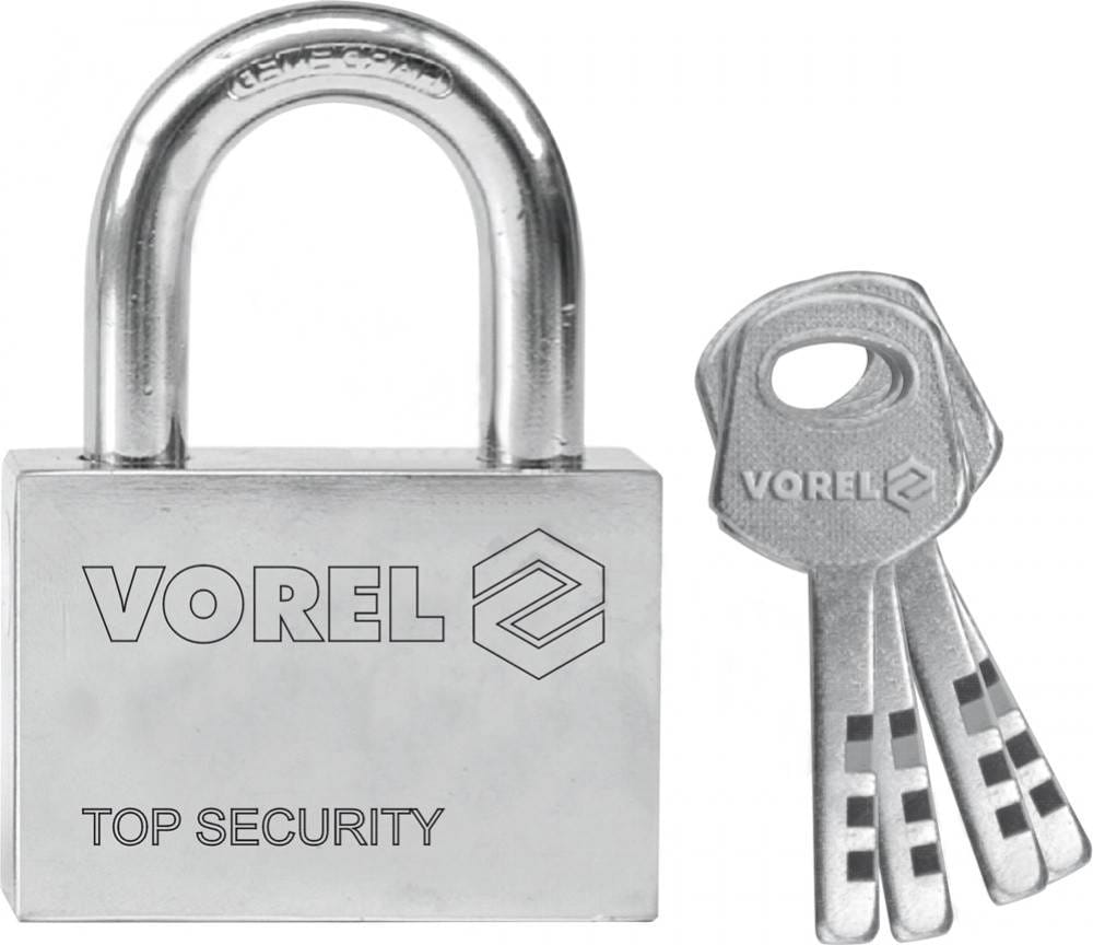 Kłódka Vorel charakteryzuje się solidnym wykonaniem oraz masywnym korpusem z żeliwa.