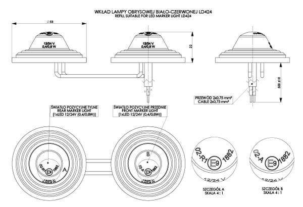 Lampa obrysowa diodowa - wkład do wieszaka/wysięgnika, biało-czerwony LD424