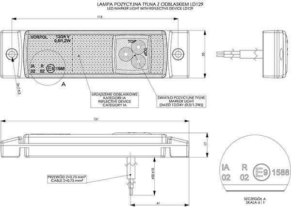 Lampa obrysowa z odblaskiem czerwona LD 129