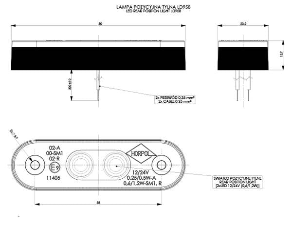 LAMPA POZYCYJNA Z PODKŁADKAMI, CZERWONA LD958