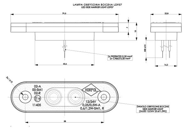 Lampa pozycyjna diodowa z podkładkami niską i wysoką, pomarańczowa LD 957