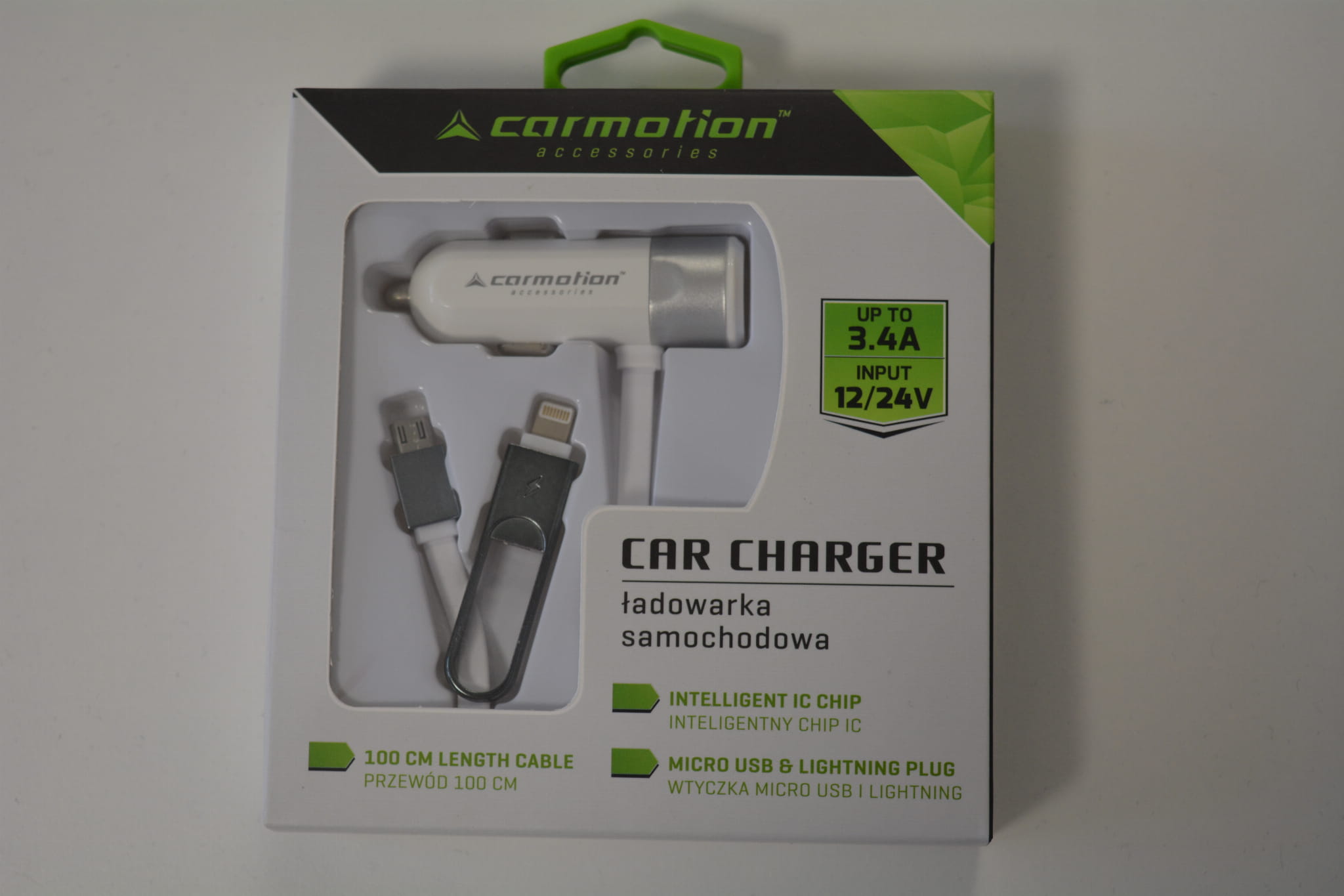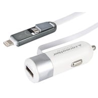 Ładowarka samochodowa 3.4A z gniazdem USB i dołączonym 100-centymetrowym kablem z adapterem micro USB i lightning
