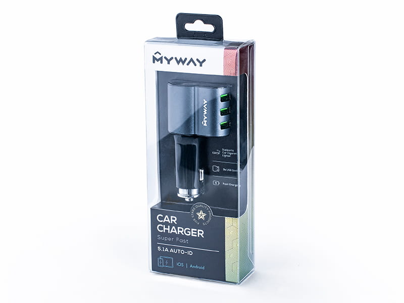Ładowarka samochodowa MYWAY 12/24V, Auto-ID max. 5.1A, 3x USB, 1x gniazdo