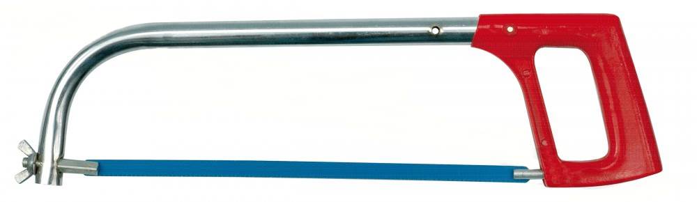 Praktyczna ramka z brzeszczotem do cięcia metalu. Konstrukcja pozwala na skracanie ramienia piły i używanie brzeszczotów o długościach 250 i 300 mm. Uchwyt z odlewu aluminiowego naciąg brzeszczotu śrubą z nakrętką motylkową.