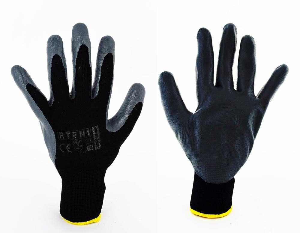 Rękawice ochronne wykonane z poliestru, powlekane nitrylem.
