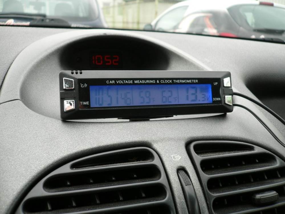 TERMOMETR SAMOCHODOWY WEWNĘTRZNO ZEWNĘTRZNY Z PODŚWIETLENIEM I WSKAŻNIKIEM STANU NAŁADOWANIA AKUMULATORA 61741