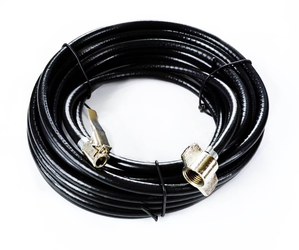 Wąż do pompowania kół samochodów ciężarowych i ciągników rolniczych zaopatrzony w wysokiej jakości końcówki oraz bardzo dobre opaski firmy OETIKER z pierścieniem wewnętrznym zapewniającym idealną szczelność.