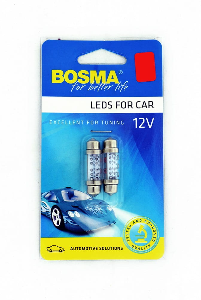 ŻARÓWKA BOSMA 12V LED SV8,5 10x36 CZERWONA 2854 2SZT.