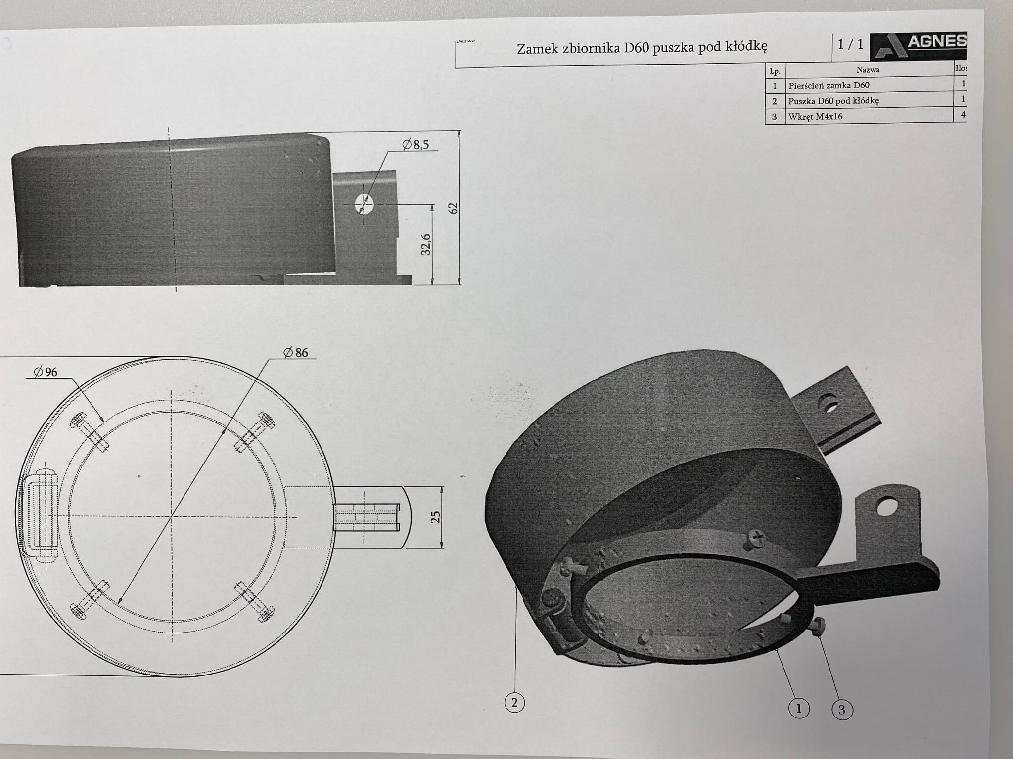 Zamek zbiornika FI 60 puszka pod kłódkę 030