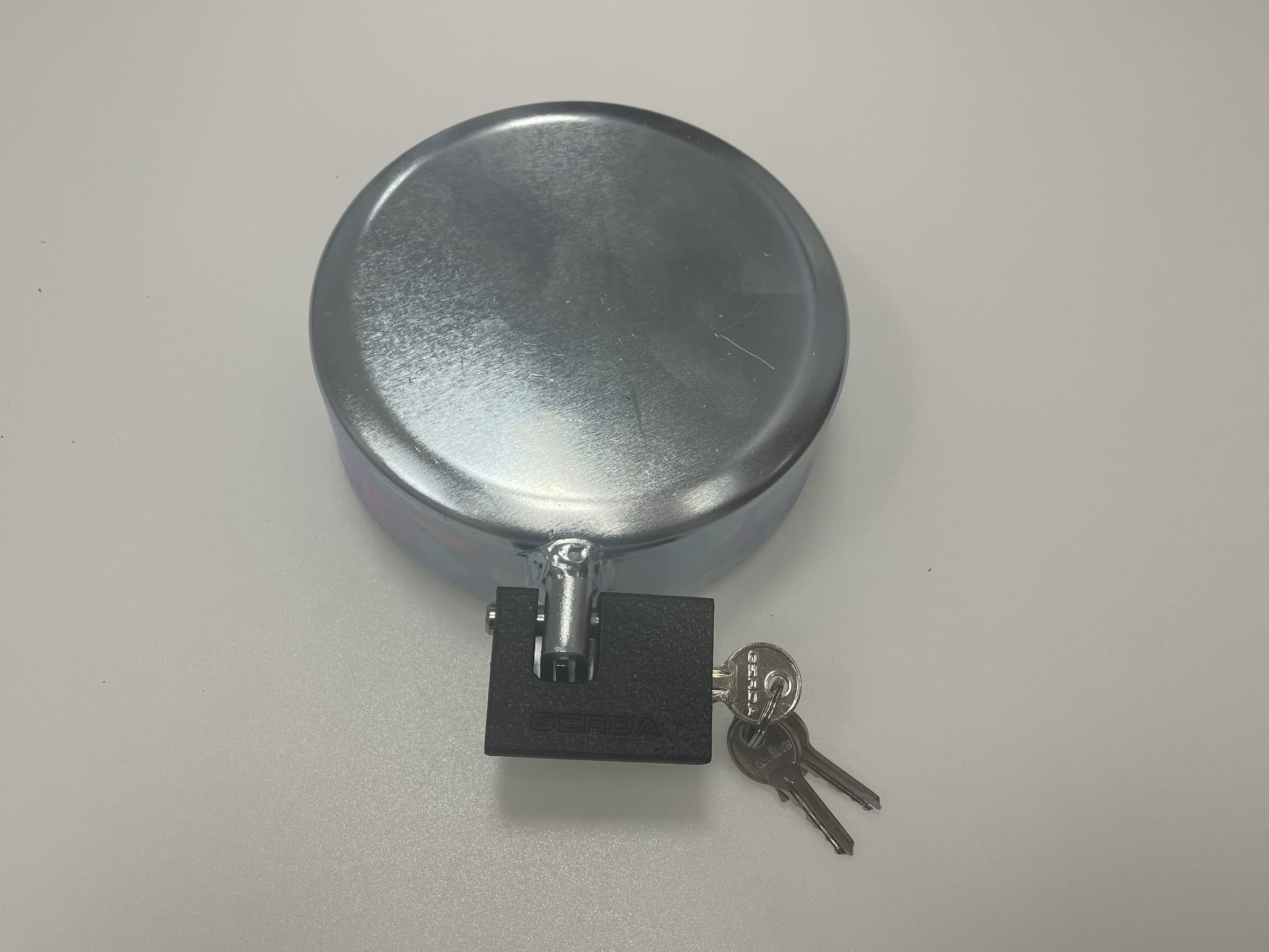 Zamek zbiornika Fi 80 puszka z kłódką ocynk 079