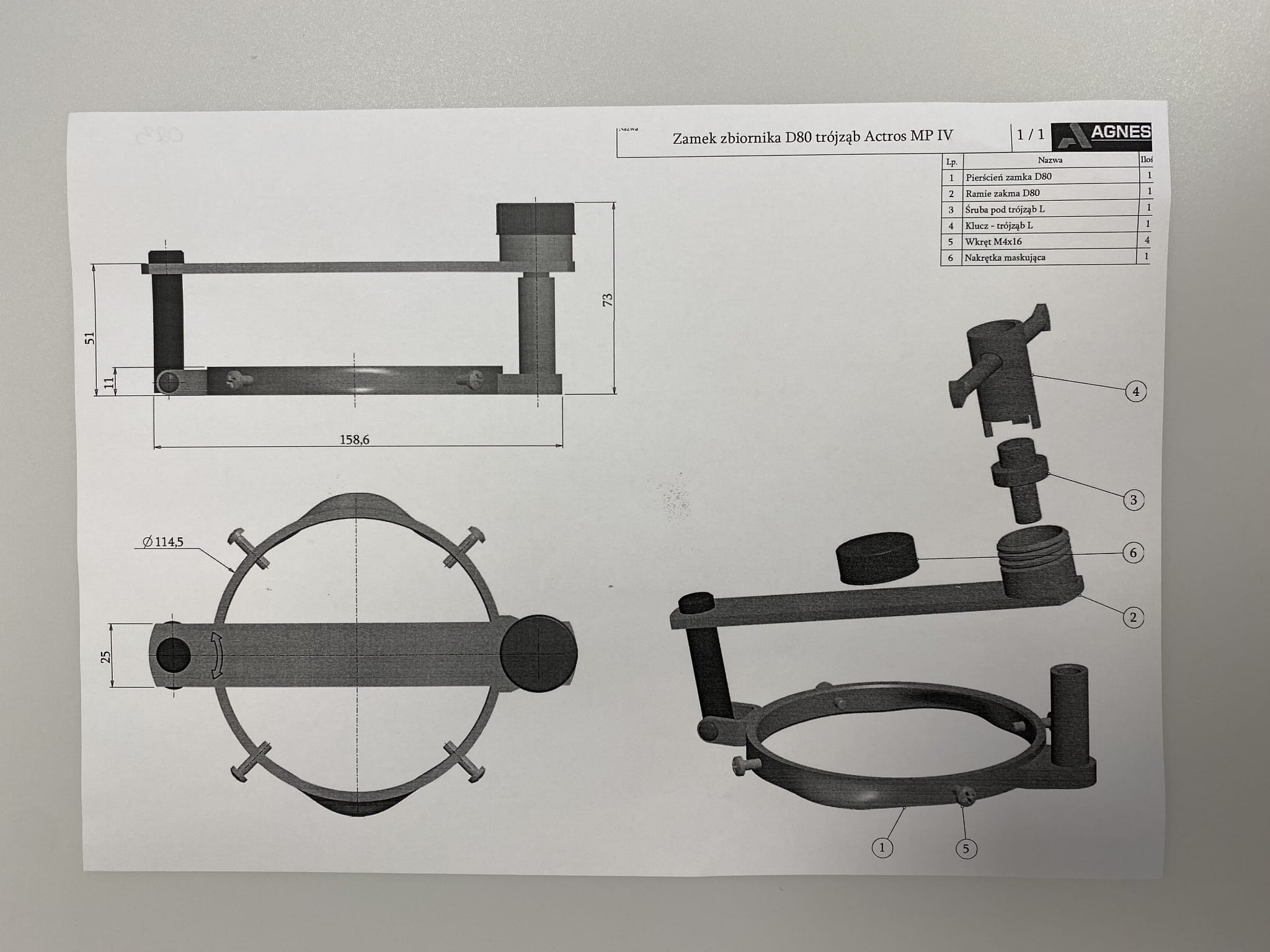 Zamek zbiornika fi 80 Actros MP IV trójząb 023
