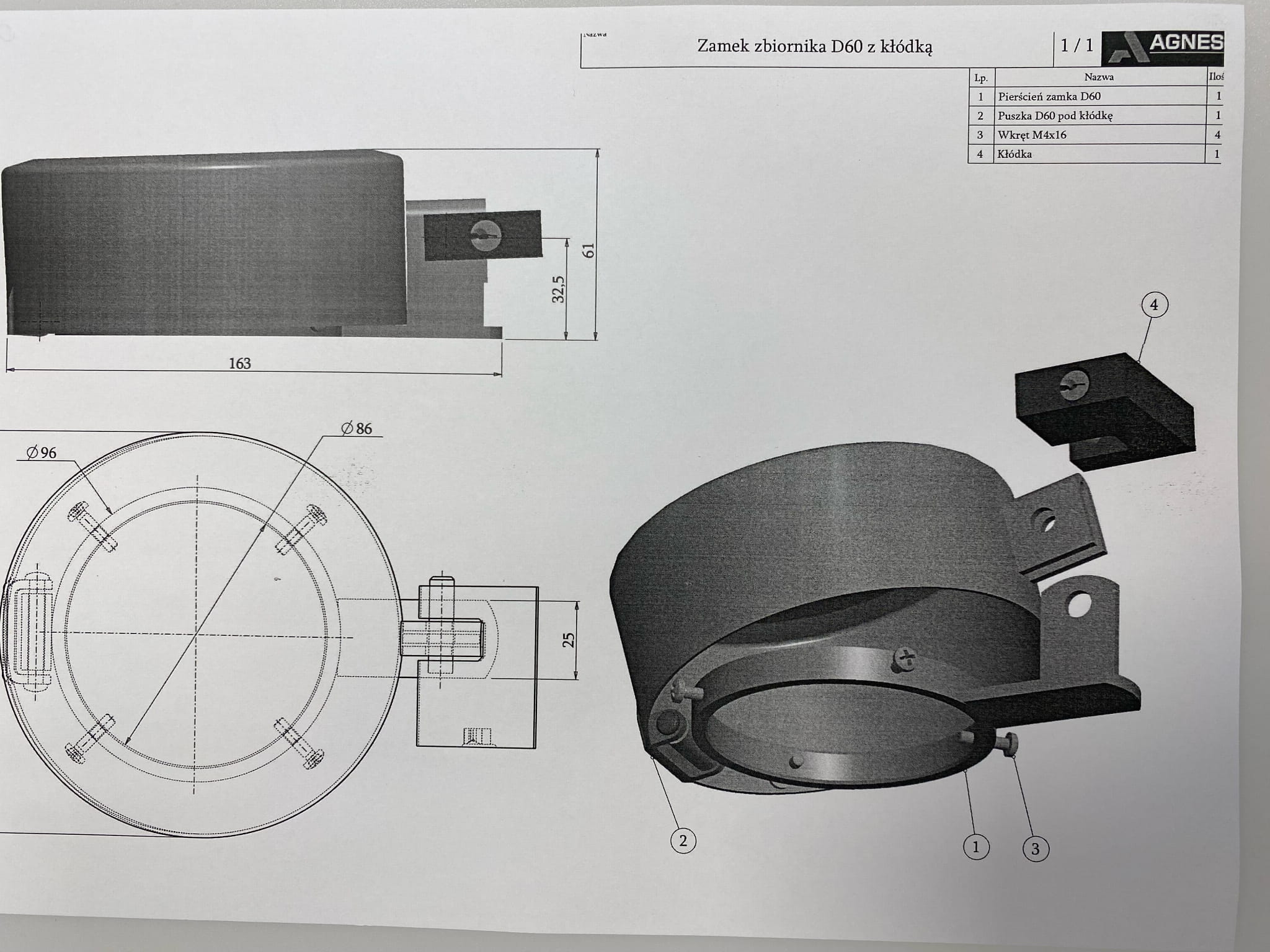 Zamknięcie zbiornika paliwa Ø60, KŁÓDKA