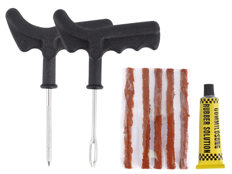 Zestaw umożliwia szybką naprawę przebitej opony.