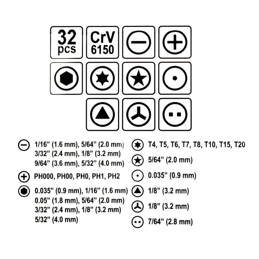 Zestaw-wkrętak z końcówkami, 32 szt. 64396